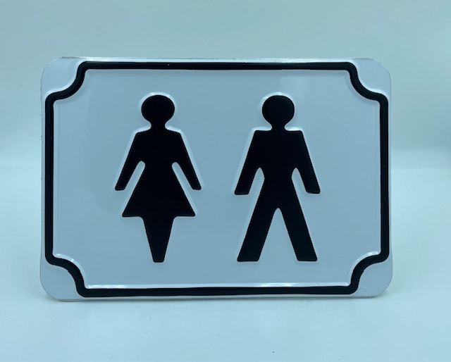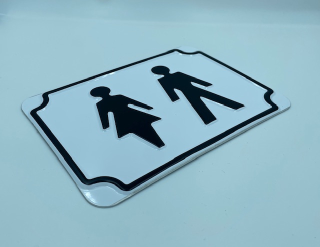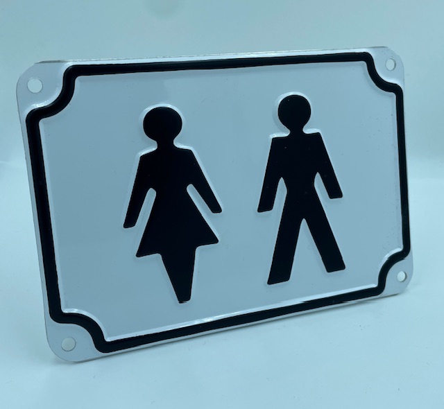 Perinteinen prässätty WC kyltti. Käytetään yleisesti ohjaamaan ulostus (esim faeces) tarpeessa olevia henkilöitä hakeutumaan ulostus toimintaan soveltuviin tiloihin. Soveltuu käytettäväksi myös normaaleissa olosuhteissa ulkotiloissa. Puhdistus suoritteva runsaalla puhtaalla vedellä ja miedolla pesuaine liuoksella (ph7) pehmeää mikrokuituliinaa käyttäen. Ei kestä hankausta tai voimakkaita pesuaineita.