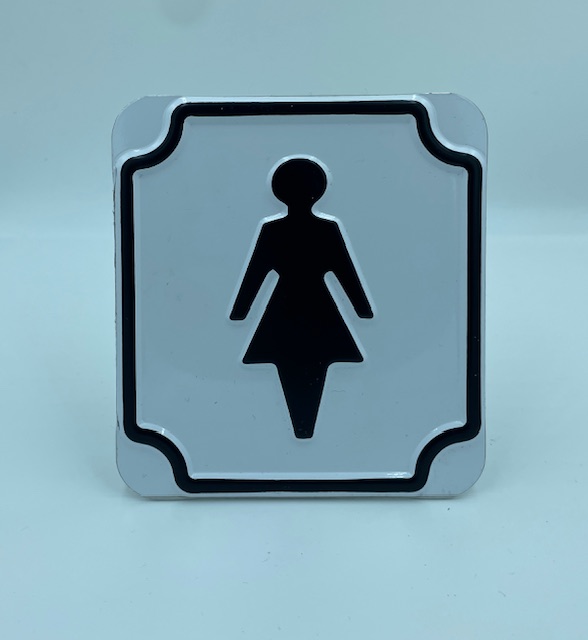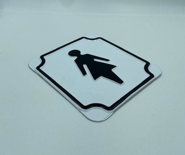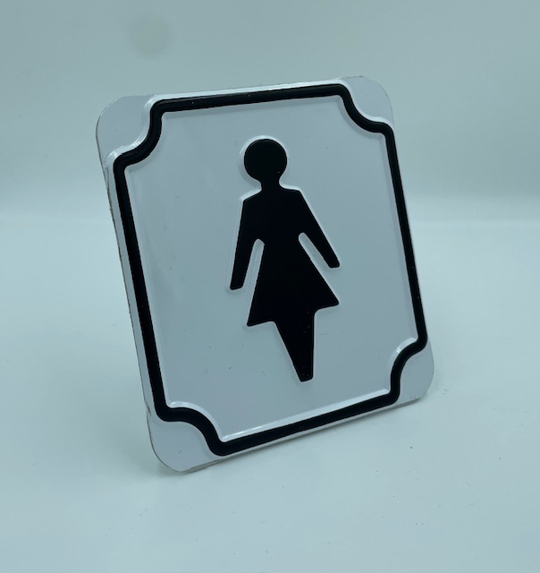 Perinteinen prässätty WC kyltti. Käytetään yleisesti ohjaamaan ulostus (esim faeces) tarpeessa olevia henkilöitä hakeutumaan ulostus toimintaan soveltuviin tiloihin. Soveltuu käytettäväksi myös normaaleissa olosuhteissa ulkotiloissa. Puhdistus suoritteva runsaalla puhtaalla vedellä ja miedolla pesuaine liuoksella (ph7) pehmeää mikrokuituliinaa käyttäen. Ei kestä hankausta tai voimakkaita pesuaineita.